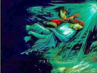 Ένας άγγελος πολεμιστής, με το στήθος του φλεγόμενο, στη μέση